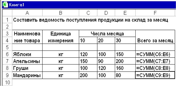 Рис. 8.1. Использование функции СУММ