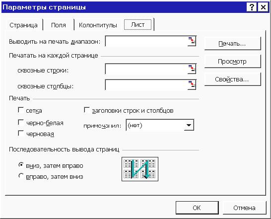 Рис. 9.8. Вкладка Лист диалогового окна Параметры страницы