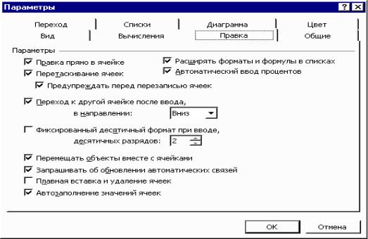 Рис. 2.3. Вкладка Правка диалогового окна Параметры