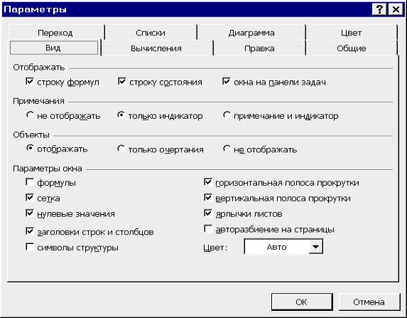 Рис. 2.1. Вкладка Вид диалогового окна Параметры
