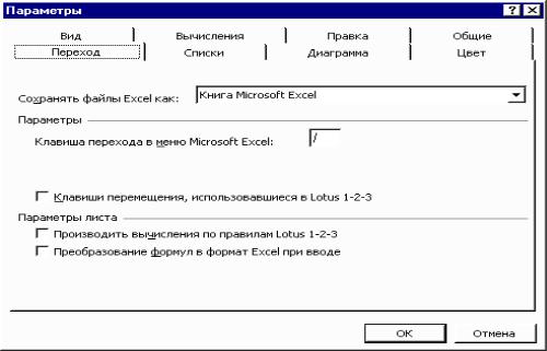 Рис. 2.4. Вкладка Переход диалогового окна Параметры