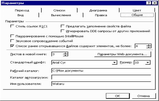 Рис. 2.5. Вкладка Общие диалогового окна Параметры