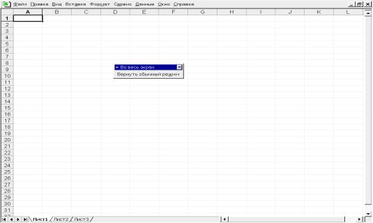 Рис. 3.1. Окно рабочей книги в режиме полноэкранного представления