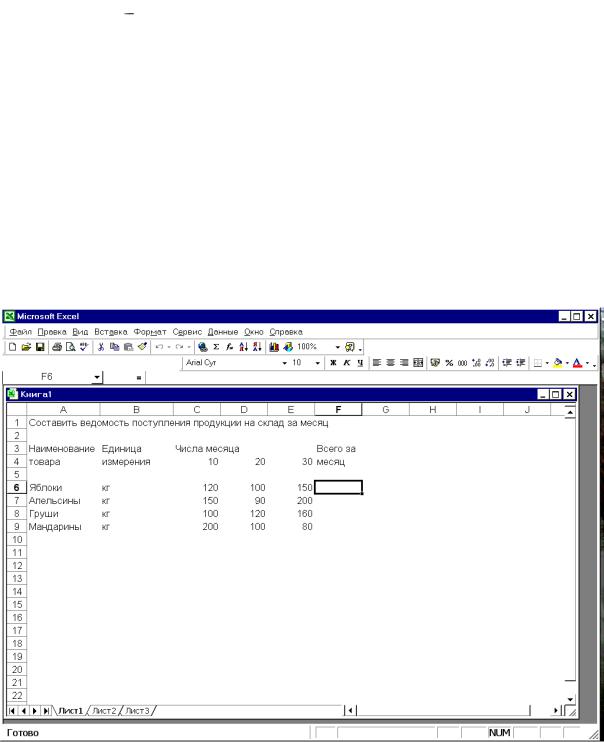 При запуске Excel в окне документа появляется пустая рабочая книга. Рабочая книга это основной документ, используемый Excel для хра-