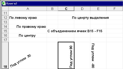 Рис. 6.8. Разные способы выравнивания данных в ячейке