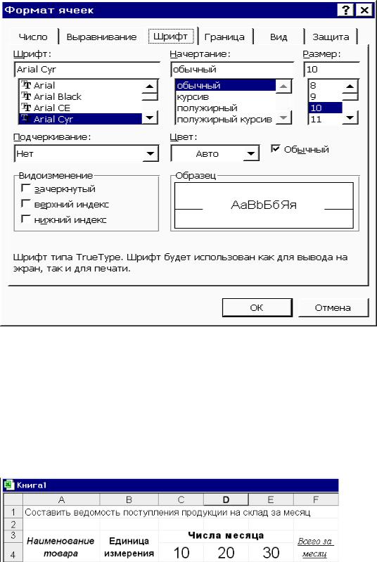Рис. 6.9. Вкладка Шрифт в диалоговом окне Формат ячеек