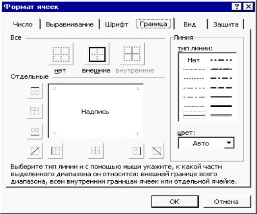 Граница диалогового окна Формат ячеек (рис. 6.11).