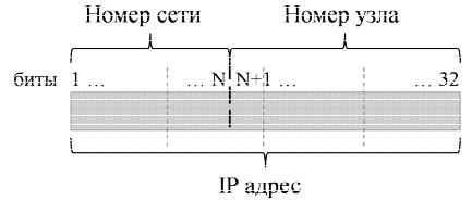 Это означает, что каждый узел должен иметь информацию о том, какое количество бит в структуре IP адресов его интерфейсов занимают номер сети и номер узла, т.е. после какого бита (бит с номером N на рис. 3) находится граница между ними.