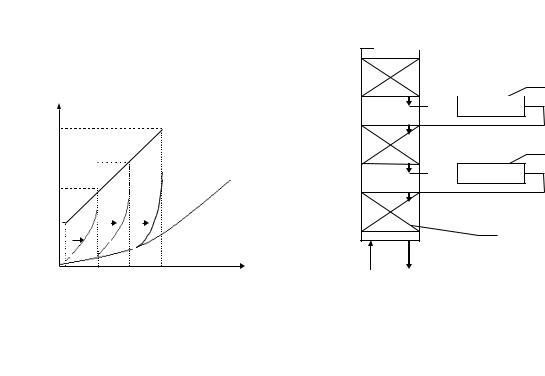 турах жидкости в каждой секции: 1, 2, 3; АВ - рабочая линия. Рисунок 4 - Схема абсорбции с промежуточным охлаждением аб-