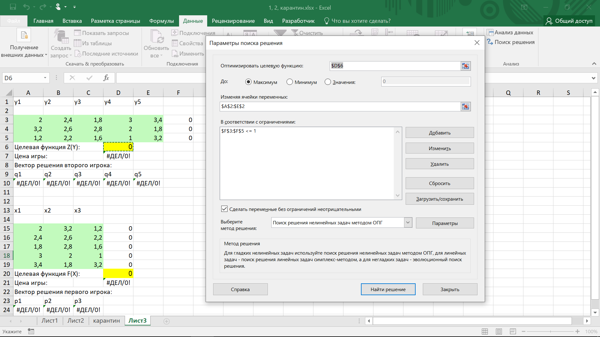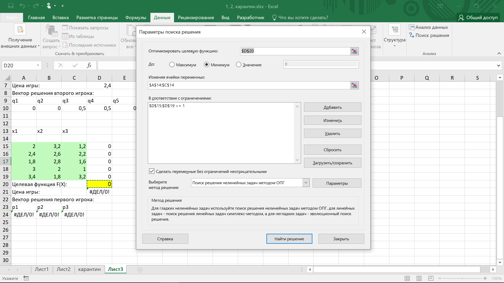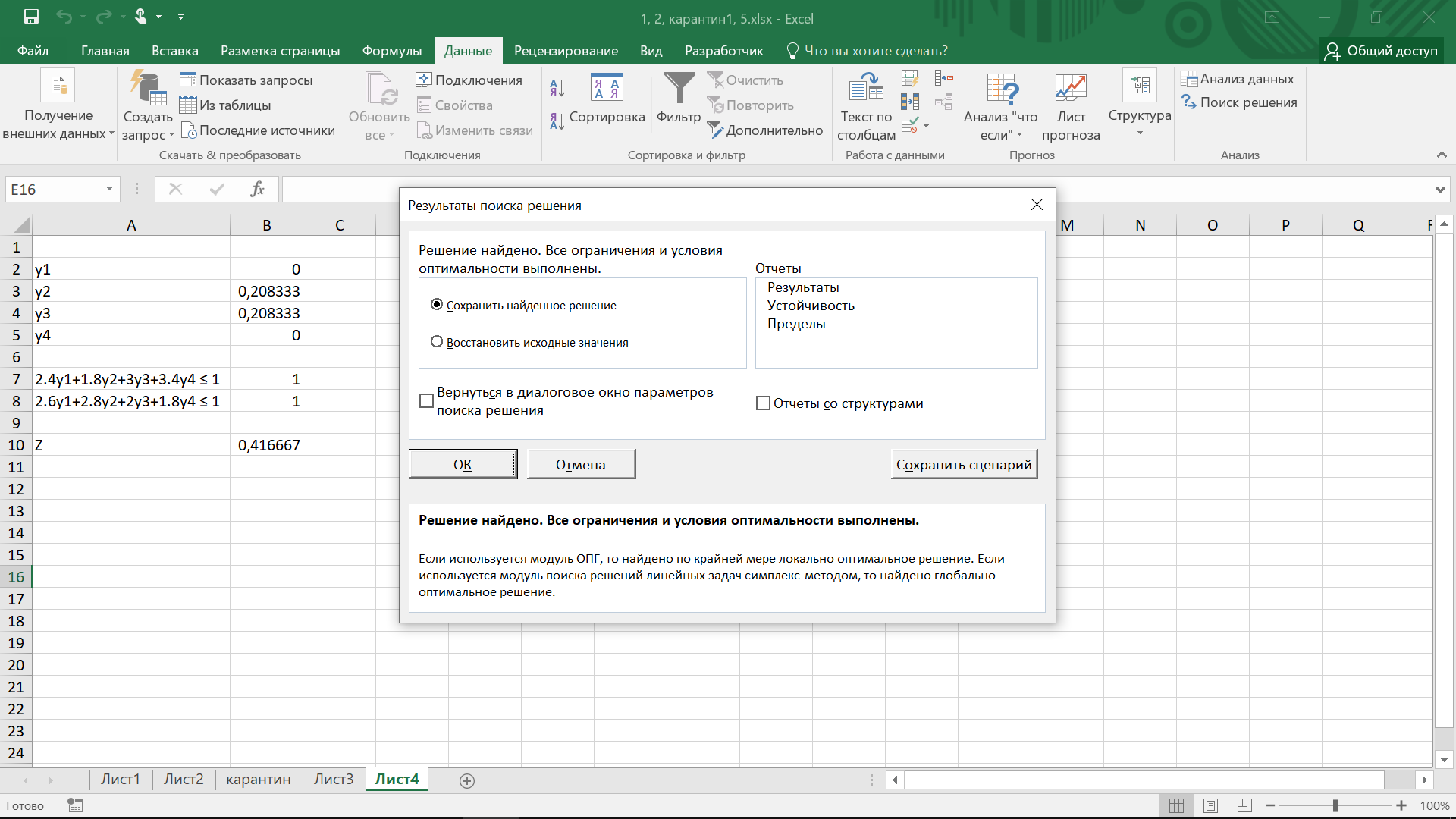 Рисунок 5 – Результат поиска решения