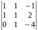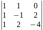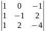 = 1·1·(-4) + (-1)·1·1 – 1·2·1 – 1·1·(-4) = -3