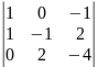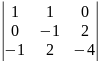 = 1·(-1)·(-4) + 1·2·(-1) – 1·2·2 = -2