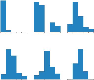 В зависимости от принадлежности наблюдения к 1 из 6 категорий по показателю X1, распределения по показателю Y1 «Количество выявленных несовершеннолетних, совершивших преступления» выглядят, как на рис. 3.