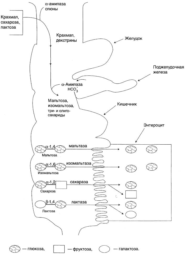 После всасывания в кишечнике моносахариды поступают в воротную вену и далее