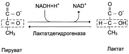 Восстановление пирувата в лактат катализирует лактатдегидрогеназа (реакция