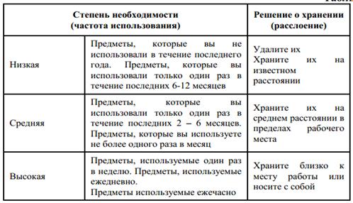 . Установление критериев объектов, которые попадают под «Кампанию красных ярлыков». Каждый критерий должен учитывать три главных фактора: полезность предмета, частоту использования и количество таких предметов.