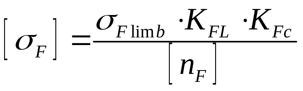 5.19 Ниже записана несколько упрощённая формула, по которой рассчитывается допускаемое напряжение для проверки зубьев на усталость при изгибе