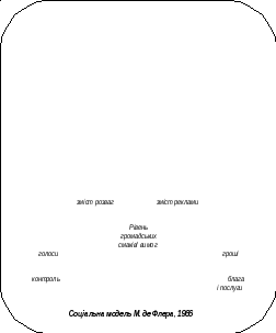 Модель де Флера є логічним втіленням сміливих концептуальних макророздумів, які базувались на природі масової комунікації як соціальної системи, складової систем культури, економіки, політики16.