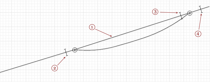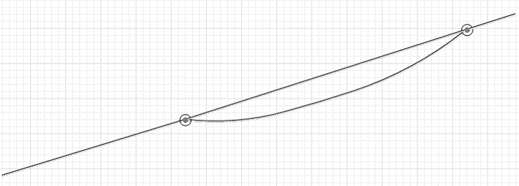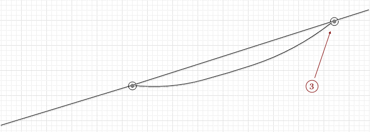 Чтобы изменить радиус кривизны, переместим круглую метку-манипулятор на конце пунктирной направляющей линии.