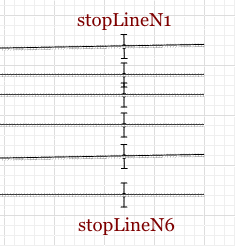 Добавьте элемент Точка ж/д пути на каждый путь назначения (всего шесть штук). Назовите их stopLineN1, ... stopLineN6. Таким образом, мы задаем линию остановки для каждого пути. Вагоны, которые катятся вниз под действием силы земного притяжения, будут останавливаться у этих точек.