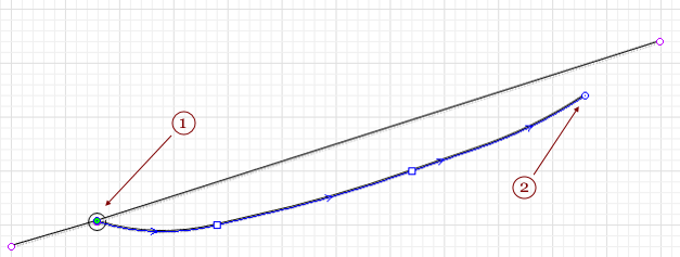 Чтобы переместить крайнюю точку сегмента, перетащим квадратную метку-манипулятор.