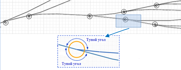 Два из трех образованных стрелкой углов должны быть тупыми. Это необходимо для определения возможных путей движения на данной стрелке (см. рисунок 6).