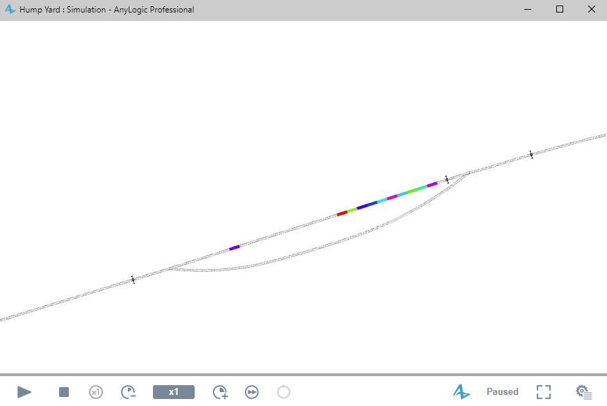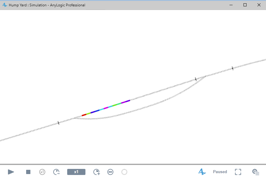 Мы завершили Шаг 2. Можете запустить модель и посмотреть, как по ж/д путям передвигаются товарные составы. Если вы увидите ошибку "The car being created must fully be on one track", значит на пути недостаточно места для помещения поезда перед элементом Точка ж/д пути stopLineEntry. В этом случае вам нужно будет увеличить длину пути trackEntry и отодвинуть дальше элемент Точка ж/д пути stopLineEntry от начальной точки ж/д пути.