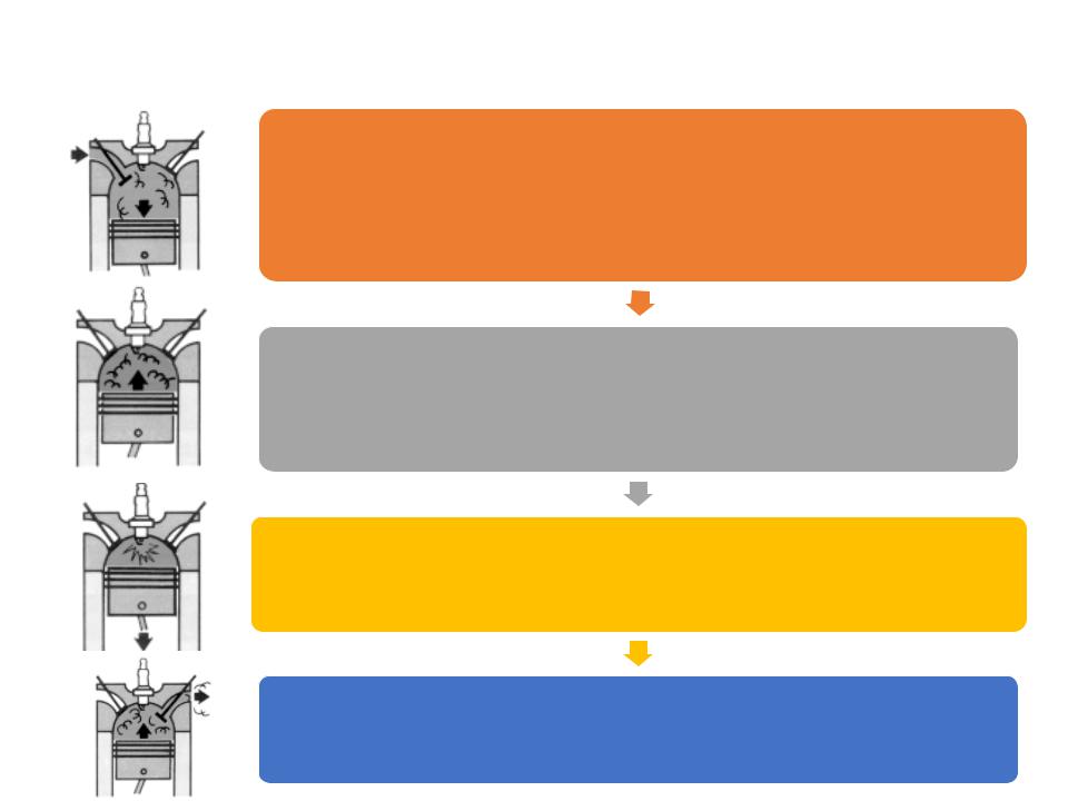 Цилиндр заполняется ТОПЛИВОВОЗДУШНОЙ СМЕСЬЮ Закрывается впускной клапан