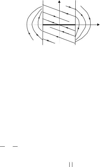 соответствует отрезок равновесия на оси x, показанный на рис. 2.17 жирной линией. Каждая точка этого отрезка является точкой равновесия, причём устойчивого равновесия, так как в зоне 1 все траектории идут по направлению к отрезку равновесия, а не от него.