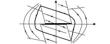 Можно показать, что при определённых условиях в системе возникнут незатухающие колебания (предельный цикл – замкнутая траектория на рис. 2.19). Точки переключения, расположенные на предельном цикле