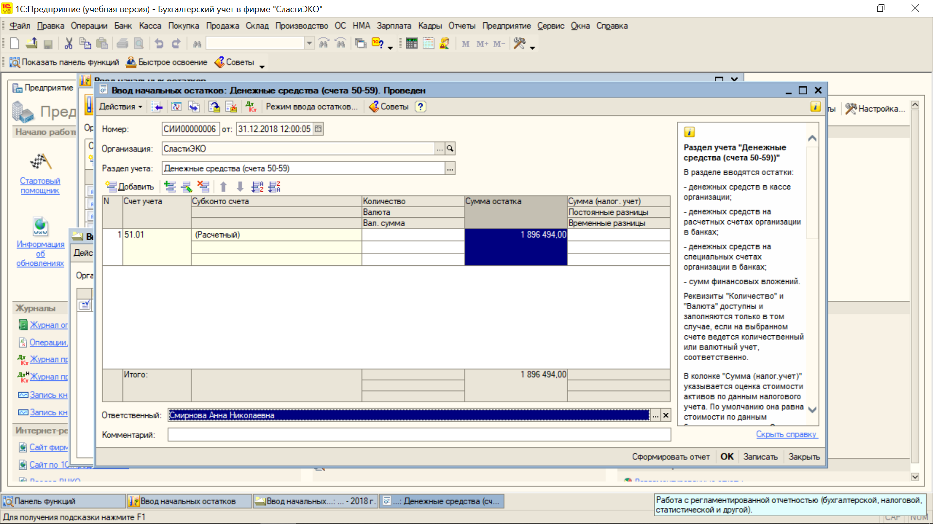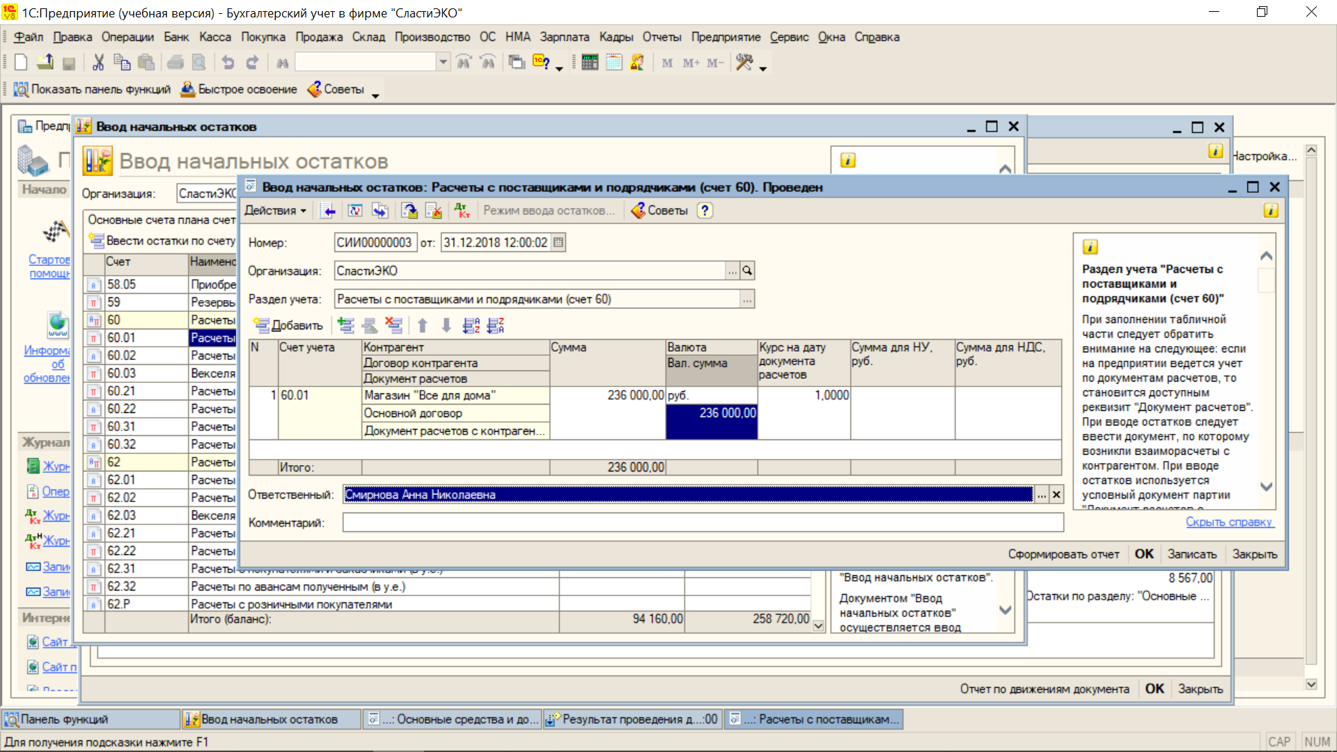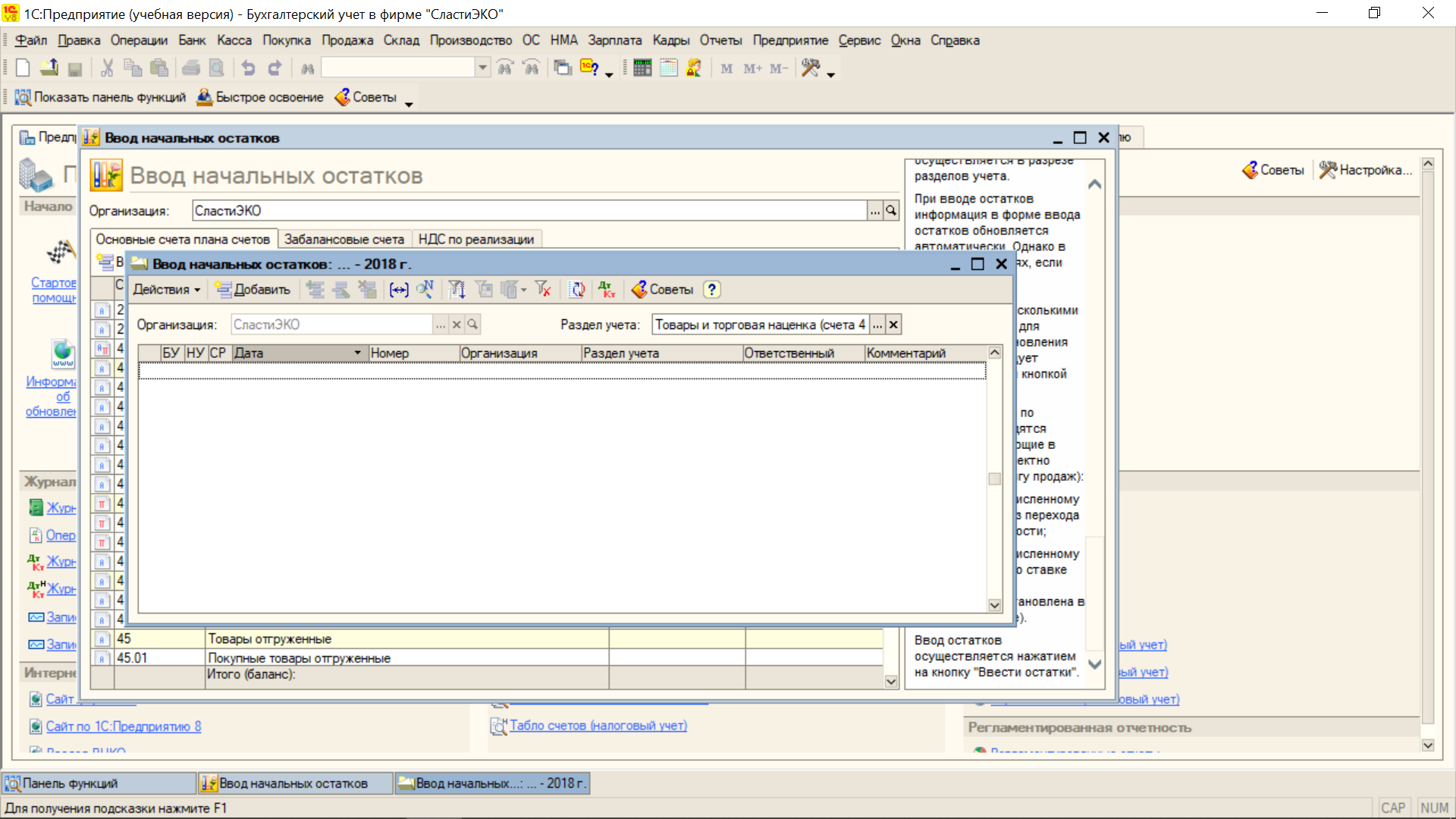 ВВОД НАЧАЛЬНЫХ ОСТАТКОВ |
