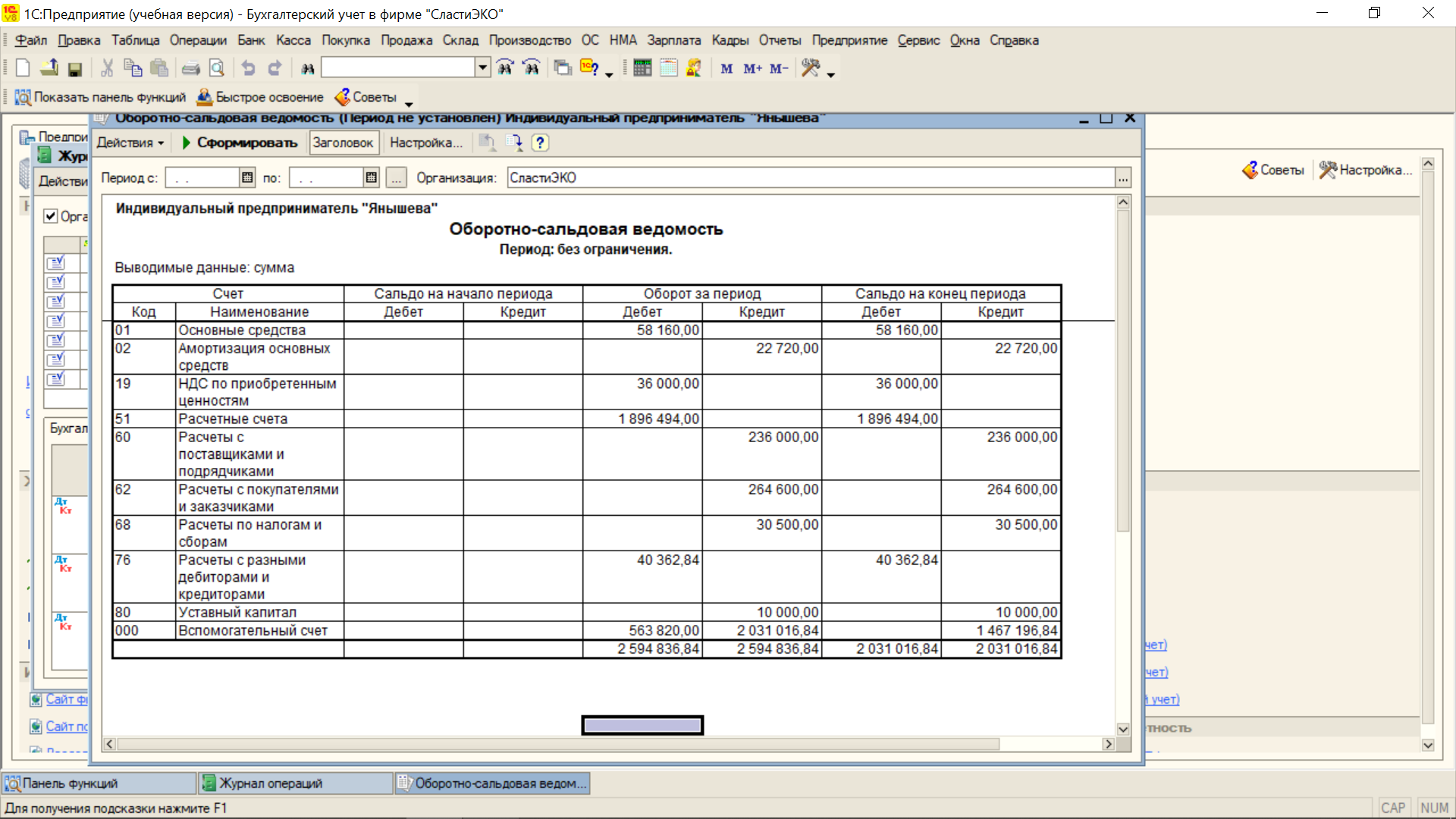 15.Сформируйте отчет «Оборотно-сальдовая ведомость».