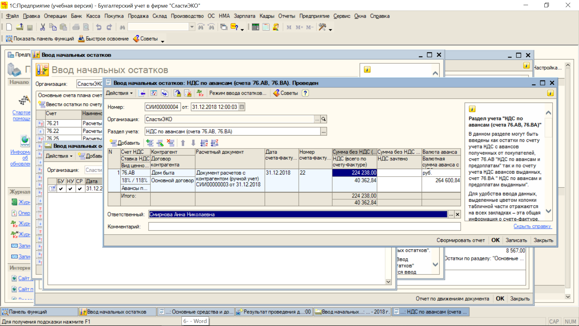 8. Ввод начальных остатков по НДС - «НДС по авансам полученным».