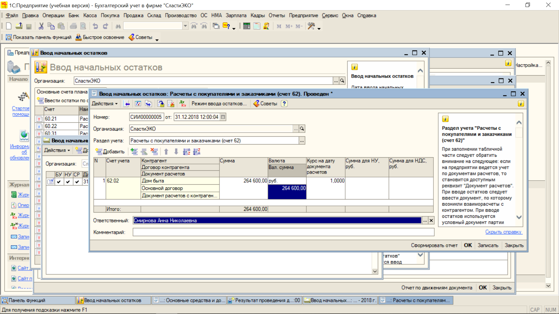 Вывод: научилась вводить начальные остатки и формировать «Оборотно-сальдовая ведомость». .