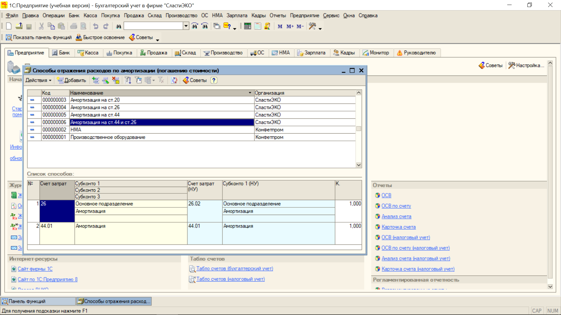 3.Создаем шаблоны по амортизации на сч.20, сч.26,сч.44, сч.44 и сч.26 .