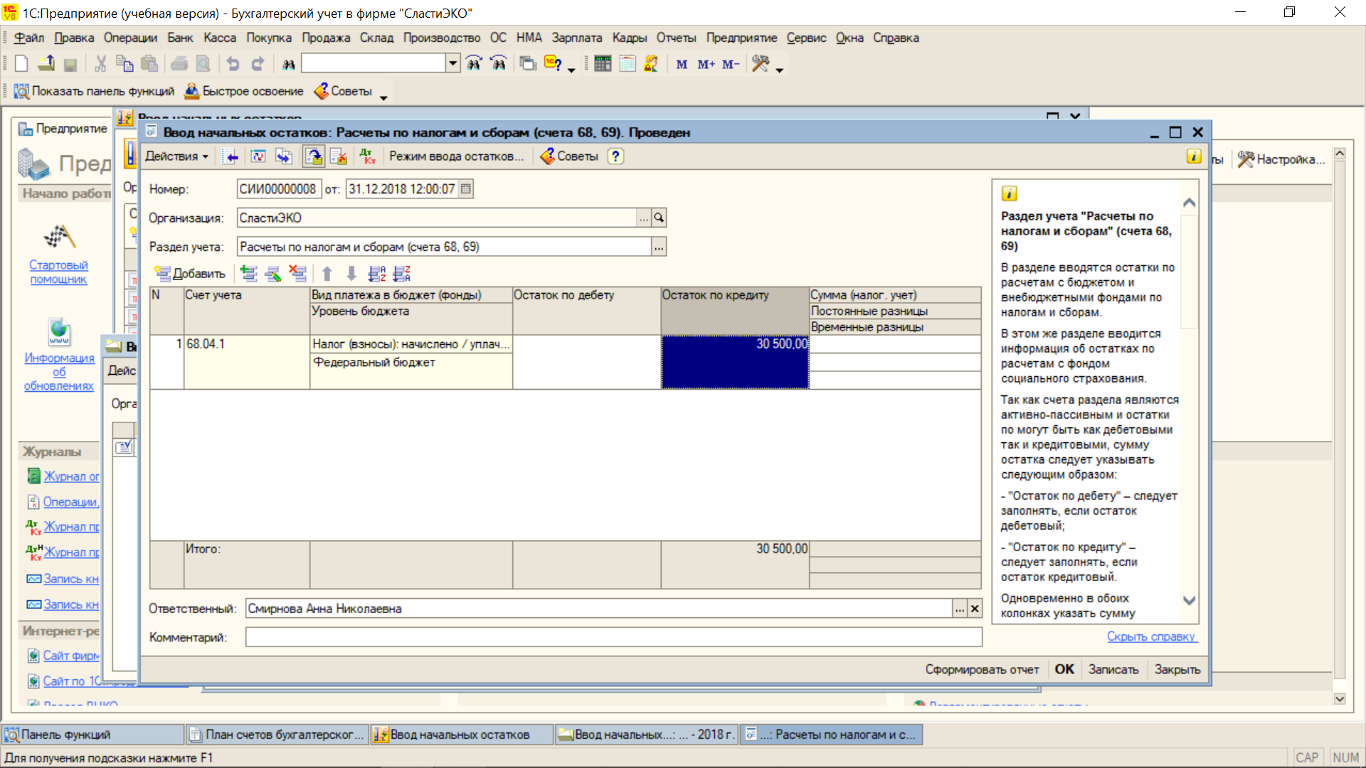 13.Контроль ввода начальных остатков по счету 68.04.1