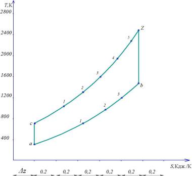в) Точка Z. По формуле (15) определяем показатель политропы CZ, по которой подводятся тепло q1, причем