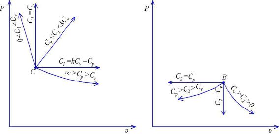 Давление и удельный объем в точке В находим по формулам, связывающим параметры в политропном процессе, причем