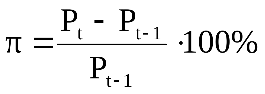 Измерение инфляции. Главным показателем инфляции выступает темп (или уровень) инфляции - , который рассчитывается как процентное отношение разницы уровней цен текущего и предыдущего года к уровню цен предыдущего года: