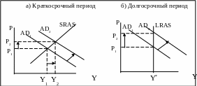 При этом в краткосрочном периоде инфляция сочетается с ростом реального выпуска, а в долгосрочном периоде реальный выпуск не меняется и находится на своем естественном (потенциальном) уровне.