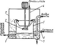 Рис. 5.18. Схема флотатора: 1 — штуцер для виходу суспензії, що згущує; 2