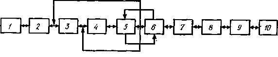 Рис. 1.3. Циклічні і лінійні зв'язки між етапами проектування (цифрові позначення див. на рис. 1.3.)