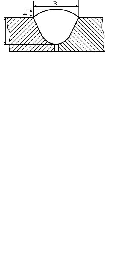 Важными показателями, характеризующими параметры сварного шва, являются глубина проплавления основного металла Н, величина усиления шва h1 и ширина шва В (рис. 2).