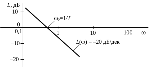 Логарифмическая амплитудная частотная характеристика интегрирующего звена показана на рис.6.4.7.