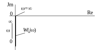 АФЧХ интегрирующего звена совпадает с отрицательной осью ординат.