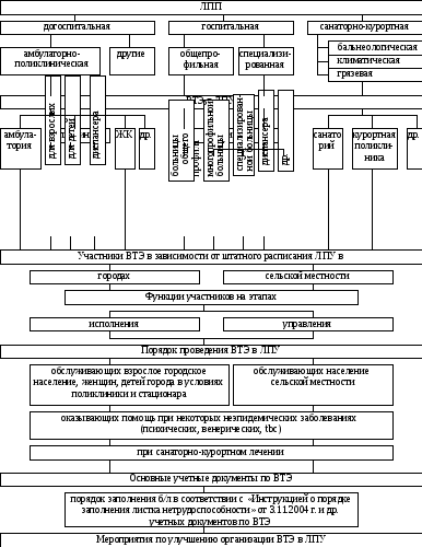 Согласно положению об экспертизе нетрудоспособности, ВКК организуется в лечебно-профилактических учреждениях (больницах, амбулаторно-поликлинических учреждениях, диспансерах, женских консультациях и других учреждениях), клиниках высших медицинских учебных заведений и институтов при наличии в их штате не менее 15 врачей, ведущих амбулаторный прием больных.