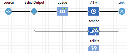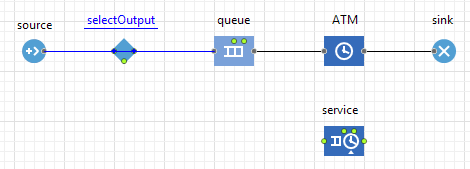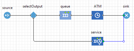 Соедините блоки selectOutput и service с другими блоками так, как показано на рисунке ниже:
