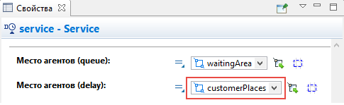 Выберите нарисованный нами узел customerPlaces в параметре Место агентов (delay)