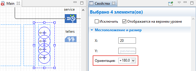 На диаграмме Main, выделите блок tellers в графическом редакторе.