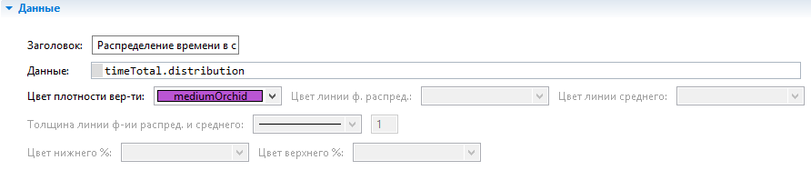 4.Введите timeTotal.distribution в поле Данные. timeTotal - имя блока TimeMeasureEnd, который собирает распределение времен пребывания агентов в системе.